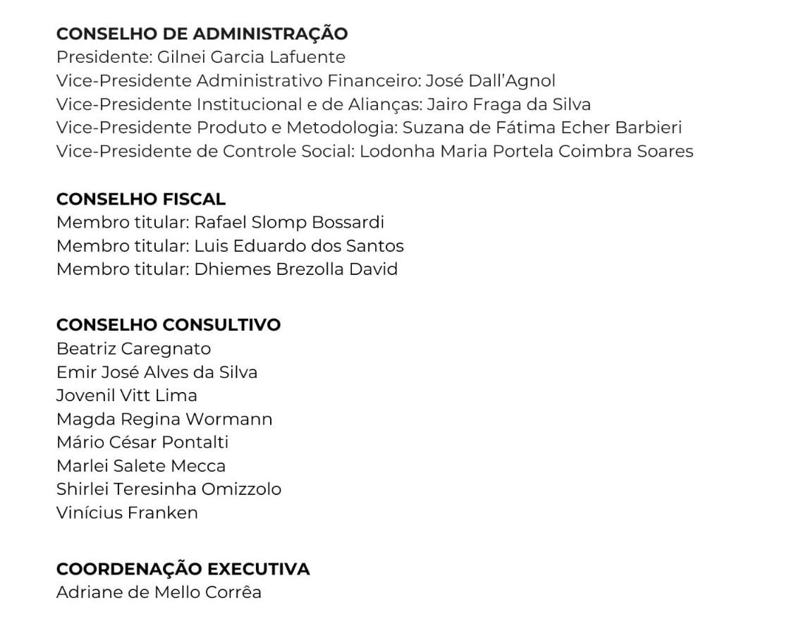 Durante a assembleia, foi eleita a nova composição da Diretoria e do Conselho Fiscal, que assume com a missão de dar sequência aos projetos em andamento, ampliar parcerias institucionais e fortalecer as ações de educação para a cidadania, mantendo o Observatório Social de Caxias do Sul como uma referência local e nacional.